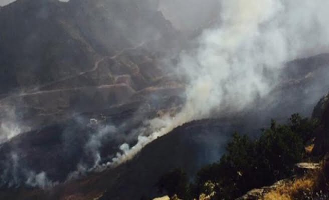 Cudi Dağı’nın eteklerinde bulunan Şırnak merkeze bağlı Cifane (Cevizdüzü), Gündike Remo (Anılmış) ve Nêvava (Üçkiraz) gibi köylerde geçtiğimiz aylarda korucular eliyle yüzbinlerce ağaç kesilmişti. Aynı köylerde dün akşam saatlerinde başlayan orman yangını yayılarak devam ediyor.