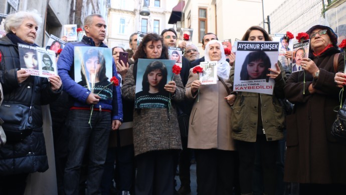 Bu haftaki basın açıklamasını okuyan İHD İstanbul Şubesi Gözaltında Kayıplara Karşı Komisyon üyesi Besna Tosun, gözaltında katledilen ve Kırıkkale yolu kenarına bırakılan eczacı Ayşenur Şimşek’in faillerinin açığa çıkarılmasını istedi. Şimşek’in 90’lı yıllarda sağlık emekçilerinin örgütlenme çalışmalarında yer aldığını ve dönemin Sağlık-Sen Ankara Şubesi kurucu başkanı olduğunu belirten Tosun, Şimşek’in çalışmaları yürüttüğü sırada iki kez gözaltına alındığını ve ağır işkenceye maruz kaldığını anlattı. Şimşek’in ailesinin o dönemlerde sık sık telefonlarla tehdit edildiğine değinen Tosun, “Ayşenur’un ailesini defalarca telefonla arayan kişiler ‘Bu işleri bırakmazsa sonu kötü olur’ diyerek tehditlerde bulundu. Hakkında yakalama kararı çıkartılan Ayşenur’un babası iki defa karakola çağrılarak ‘Kızın gelip teslim olsun yoksa onun için hiç iyi olmayacak’ diye tehdit edildi. Ailesi son olarak 24 Ocak 1995 tarihinde Ayşenur’la görüştü ve o tarihten sonra kendisinden bir daha haber alınamadı. Bunun üzerine emniyete, savcılığa ve İçişleri Bakanlığı’na başvuran aileye, ‘Gözaltına alınmamıştır’ denildi. Tüm yasal girişimleri sonuçsuz kalan aile, 21 Mart 1995 tarihinde yaptıkları basın açıklaması ile arama kampanyası başlattı” diye konuştu.