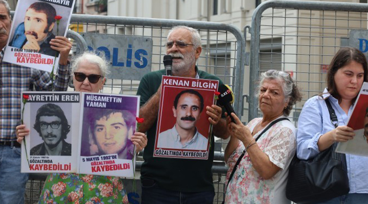 Eylemde basın metnini okuyan kayıp yakını Setenay Yarıcı, Kenan Bilgin’in (35) Ankara Dikmen’deki bir otobüs durağından gözaltına alındığını ve Ankara Emniyet Müdürlüğü’ne götürüldüğünü belirtti. Bilgin ailesi ve avukatları ve İnsan Hakları Derneği’nin (İHD) Kenan Bilgin’e ulaşmak için girişimlerde bulunduğunu söyleyen Setenay Yarıcı, “Ancak Ankara Emniyeti onun gözaltına alındığını inkâr etti. Bunun üzerine on bir tanık Kenan Bilgin’i şubede işkencede gördüklerini kamuoyuna açıkladı. Ankara Cumhuriyet Başsavcılığı’na başvuran Bilgin Ailesi, Kenan’ın bulunmasını istedi. Kenan’ı bulmak, faillere ulaşmak için girişimlerde bulunan Ankara Cumhuriyet Başsavcısı Selahattin Kemaloğlu’nun görevini yapması engellendi ve Ankara’dan sürüldü. Soruşturmayı devralan Ankara Cumhuriyet Başsavcı Vekili Özden Tönük, ailenin ve tanıkların başvuruları ile ilgili gerekli girişimlerde bulunmadı. Tanık Ö. A. ve M.Y. ‘Kenan Bilgin’i hücreden alıp götüren polisleri teşhis edebileceklerini’ söylemelerine rağmen bu konuda hiçbir şey yapmadı. Tanıkların, polisi ve devleti küçük düşürmeye yönelik gerçek dışı iddialarda bulunduğunu içeren 3 sayfalık bir rapor yazarak dosyayı kapattı. Raporun gerçeği yansıtmadığı AİHM kayıtlarına geçti” dedi.