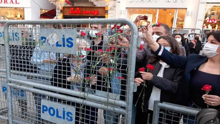 17-31 Mayıs Gözaltında Kayıplara Karşı Uluslararası Mücadele Haftası’nda Cumartesi Anneleri Galatasaray Meydanı’nda açıklama yaptı. 844’üncü haftasına ulaşan eylemlerinin 700’üncü haftasından bu yana İçişleri Bakanlığı kararıyla Galatasaray Meydanı’nda bir araya gelmeleri engellenen Cumartesi Anneleri’nin yaptığı eyleme HDP Eş Genel Başkanı Pervin Buldan, HDP Milletvekili Oya Ersoy ve Dilşat Canbaz Kaya, CHP Milletvekili Sezgin Tanrıkulu, İHD İstanbul Şube Başkanı Gülseren Yoleri de katıldı. Galatasaray Lisesinin önünü ablukaya alan polis, eylemi engellemeye çalıştı ancak kayıp yakınları yasağı tanımayarak karanfil bıraktı ve açıklama yaptı.