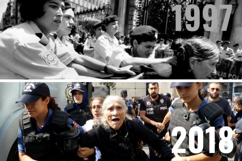Cumartesi Annelerinin kayıp yakınlarının akıbetini sormak ve faillerin cezalandırılması talebiyle sürdürdüğü barışçıl buluşmalarının 700. haftada ağır polis şiddetiyle karşılaştığı hatırlatılan açıklamada, müdahale sırasında 46 kişinin gözaltına alındığı ve Galatasaray Meydanı’nın 116 haftadır Cumartesi Anneleri ’ne kapalı olduğuna dikkat çekildi.