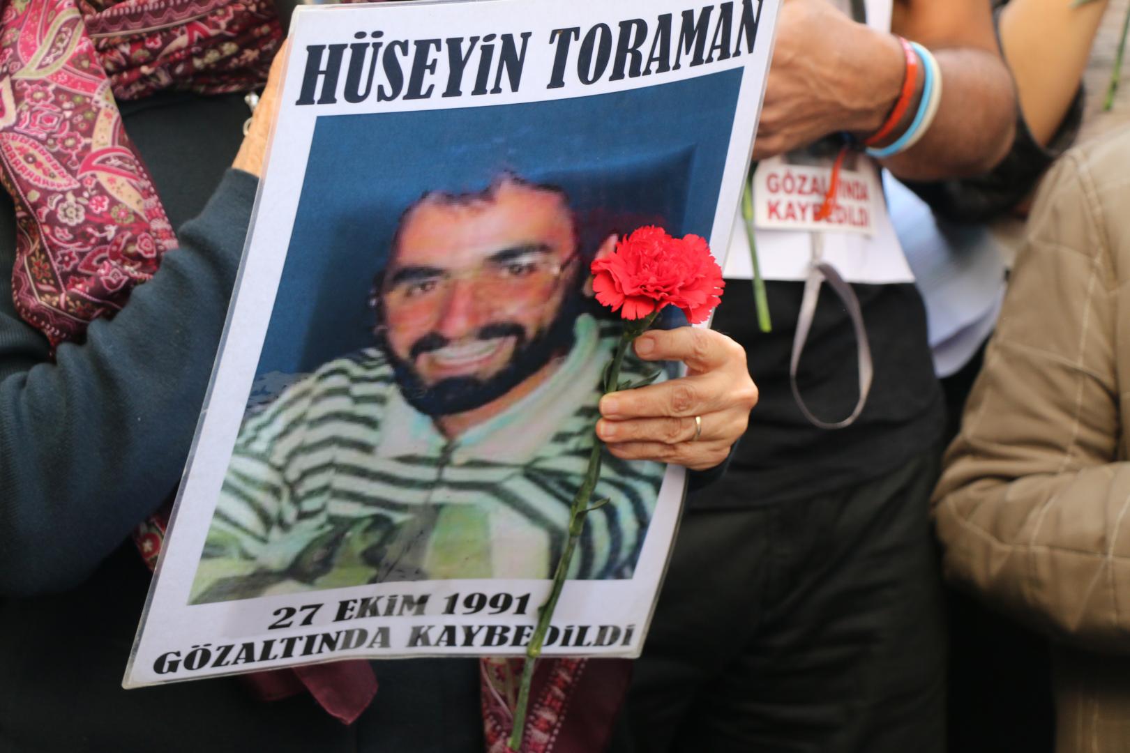 Daha sonra söz alan Hüseyin Toraman’ın kardeşi Sakine Toraman 30 yıldır tüm aramalara rağmen kardeşini bulamadıklarını belirtip, gözaltında kayıp dosyalarının zaman aşımı gerekçesiyle, cezasızlık politikası sonucu kapatıldığını söylerek, “Bütün yıllar verilen mücadeleler sonuçsuz kalsa bile biz kayıplarımızı aramaktan asla vazgeçmeyeceğiz. Biz bitti demeden bitmeyecek” diye konuştu.