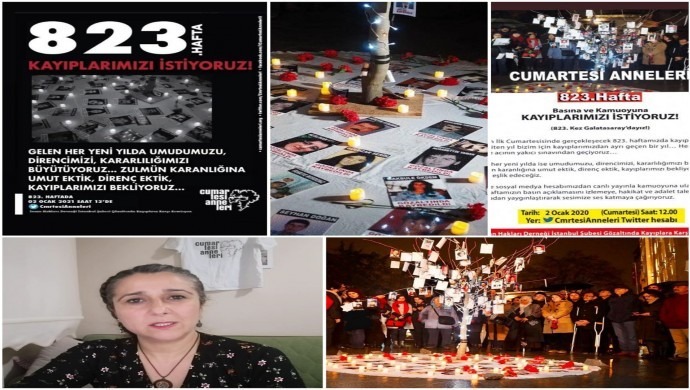 Cumartesi Anneleri, gözaltında kaybedilen yakınlarının akıbetini sormak amacıyla her cumartesi günü yaptıkları açıklamayı, 823’üncü haftada Covid-19 salgını tedbirleri kapsamında internetten yayınladı.