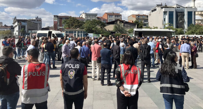 Cumartesi Anneleri’nin 2018 yılındaki 700’üncü hafta buluşmasında gözaltına alınan 46 kişinin yargılandığı davanın 5’inci duruşması bugün Çağlayan Adliyesi’nde görülecek. Duruşma öncesi adliye binası önünde yapılmak istenen açıklamaya polisler saldırdı.