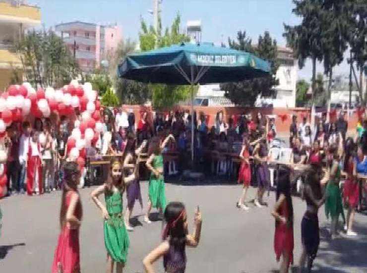 Mersin’de 23 Nisan gösterisi yapan 3’üncü sınıf öğrencilerinin gösterisi, kıyafetleri gerekçe gösterilerek yarıda kesildi