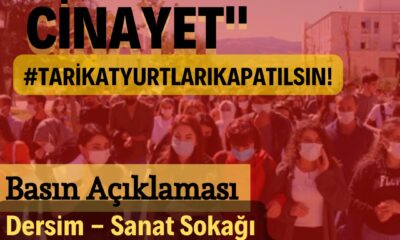 Dersim’de gençlik örgütleri “İntihar değil cinayet”, “tarikat yurtları kapatılsın” şiarıyla basın açıklaması düzenleyecek.