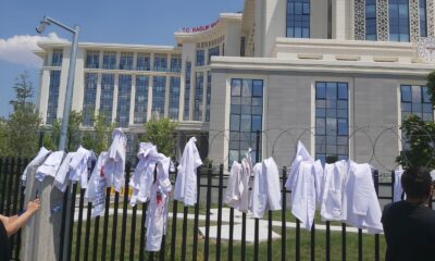 / 4 yıl agoHekimlerden Sağlık Bakanlığı önünde protesto: Kanlı önlükleri astılar