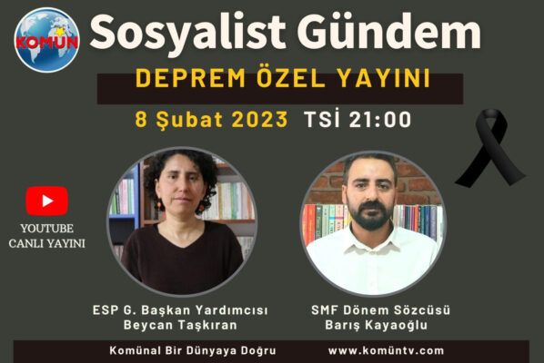 / 3 yıl agoSosyalist Gündem “Deprem Özel Yayını” ile bu akşam Komün TV ekranlarında