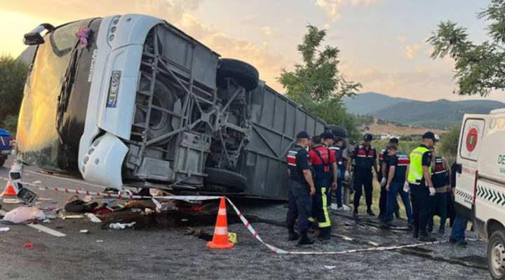 Denizli Honaz'da kontrolden çıkarak karşı şeride geçen kum yüklü kamyon, yolcu otobüsüne çarpması sonucu 6 kişi yaşamını yitirdi, 42 kişi yaralandı.