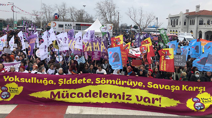 Yoksulluğa, erkek şiddetine, savaşa, emek sömürüsüne karşı sokakları terk etmeyeceklerini vurgulayan kadınlar, “Haklarımız, hayatlarımız için mücadelemizi büyüteceğiz. Tüm saldırılar karşısında mücadelemiz...