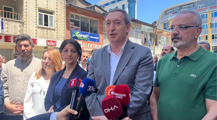 Hakkari Belediyesi’ne kayyım atanmasına ilişkin protestolar sürerken, Yüksekova ilçesinde esnaf ziyaretinde bulunan DEM Parti Eş Genel Başkanı Tuncer Bakırhan,” Sandıkta bütün...