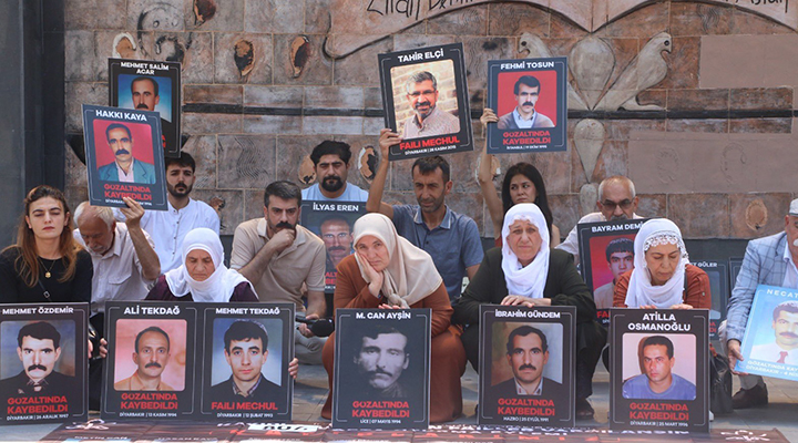 Kayıp yakınları bu haftaki eylemlerinde, 32 yıl önce katledilerek cenazesi zırhlı aracın arkasında sürüklenen ve Özgür Gündem gazetesinin “İnsanlık sürükleniyor” manşeti...