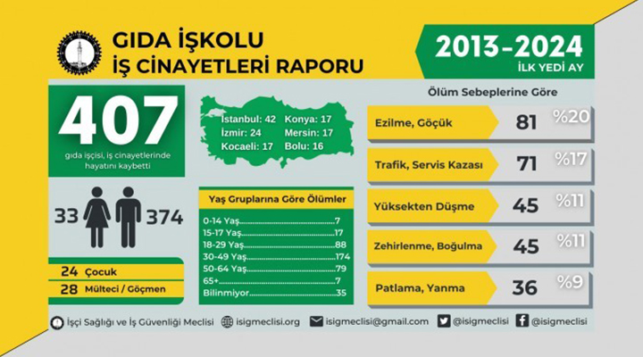 İSİG’in raporuna göre gıda işkolunda son 11 yılda en az 407 işçi iş cinayetlerinde hayatını kaybetti.