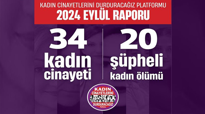KCDP’nin Eylül ayı raporuna göre, 34 kadın katledildi, 20 kadın ise şüpheli şekilde yaşamını yitirdi.