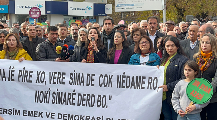 Dersim ve Ovacık belediyelerine kayyım atanması sonrası kent merkezinde basın açıklaması yapıldı. DEM Parti Eş Genel Başkanı Tülay Hatimoğulları, "Dersim zulmünüze...