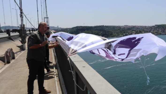 Halkların Demokratik Kongresi (HDK) Eş Sözcüsü Cengiz Çiçek ile İstanbul milletvekilleri Kezban Konukçu ve Celal Fırat, Hakkari Belediyesi’ne kayyum atanmasına ilişkin Boğaziçi Köprüsüne “kayyum defol” pankartı astı.