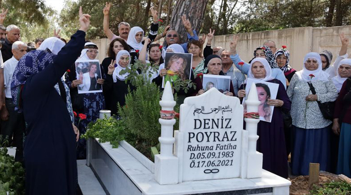 Deniz Poyraz, katledilişinin 4’üncü yıldönümünde İzmir’de bulunan mezarı başında anıldı. 17 Haziran 2021’de, fail Onur Gencer’in, Halkların Demokratik Partisi (HDP) İzmir İl Örgütü binasına gerçekleştirdiği saldırıda katlettiği Deniz Poyraz, ölüm yıldönümünde mezarı başında anıldı. Anmaya Deniz Poyraz’ın ailesi, arkadaşları, Barış Anneleri, Tevgera Jinên Azad (TJA), Halkların Eşitlik ve Demokrasi Partisi (DEM Parti) il, ilçe örgütleri, DEM Parti milletvekilleri Adalet Kaya ve Burcugül Çubuk’un yanı sıra çok sayıda siyasi parti temsilcisi, demokratik kitle örgütü temsilcisi ve yurttaş katıldı.