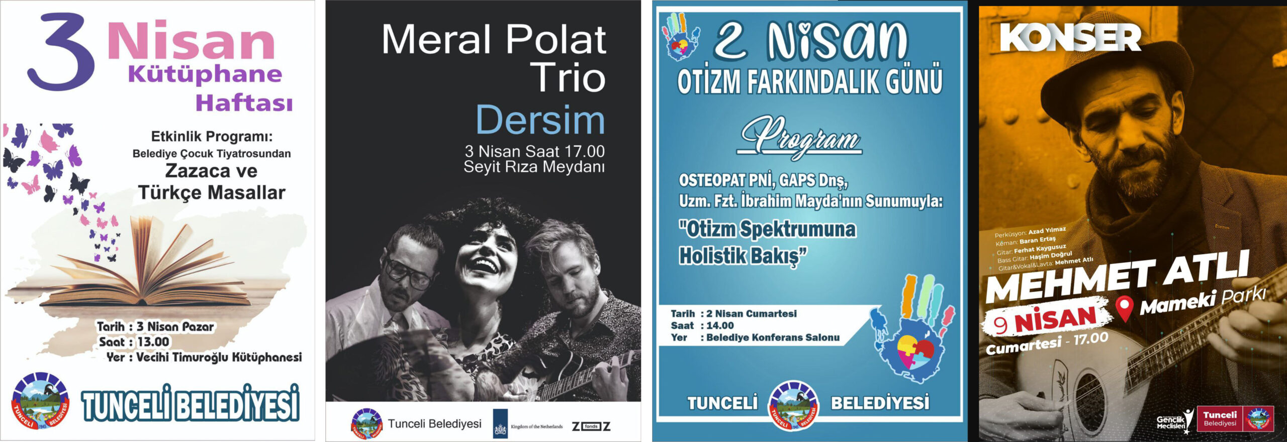 Dersim Belediyesi Kültür Müdürlüğü nisan ayında yapacağı bir dizi etkinliği kamuoyu ile paylaştı.
