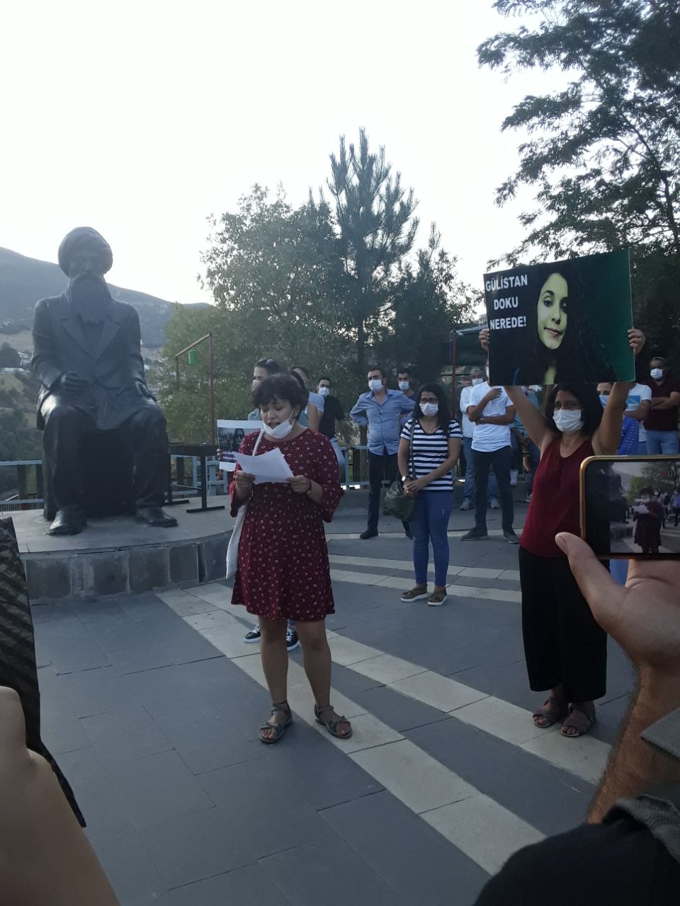 Dersim Kadın Platformu 247 gündür kaybolan Gülistan Doku nun ablası ve annesinin bugün Seyit Rıza Meydanında başlattıkları oturma eylemine saldırı yaparak işkenceyle gözaltına alınan ailenin serbest bırakılması için basın açıklaması gerçekleştirdi. Dersim Kadın Platformu adına açıklamayı Ela Deniz Albayrak okudu.