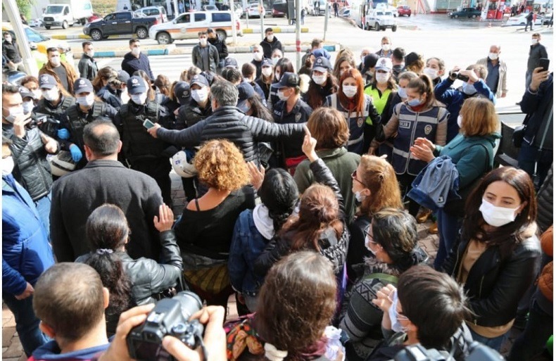 Kadınlar “Fıstıkçıoğlu’nda Taciz Var!” yazılı bir pankart taşıyarak, işletmenin önünde açıklama yapmak istedi. Polis kadınlara saldırarak engel olmaya çalıştı. kadınların taşıdığı pankartı yırtan polis, bir kadının parmağını ise sıkarak şiddet uyguladı. Eylemde SMF’li Dersim Belediye Başkan yardımcısı Canan Ay Doğan da yer aldı.