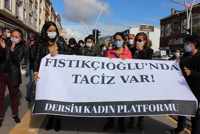 Dersim Atatürk Mahallesi’nde bir işyerinde usta olarak çalışan ve kadınları taciz eden Hüseyin Polat’ı protesto etmek amacıyla Dersim Kadın Platformu üyelerinin 6 Kasım’da yapmak istediği açıklama, polislerce engellenmişti.
