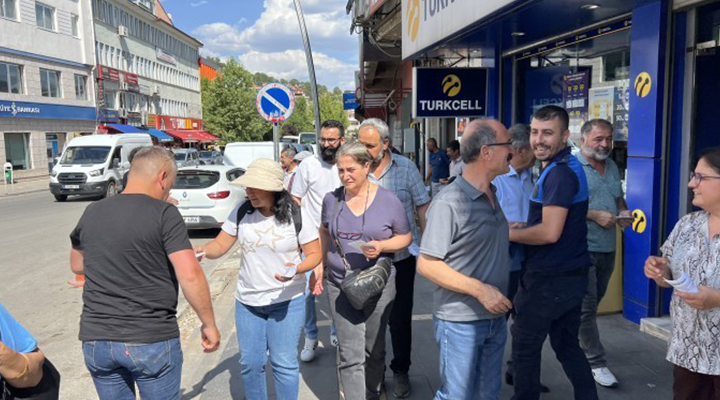 Platform üyeleri yürüyüş öncesi çarşı merkezinde bildiri dağıtarak halka katılım çağrısında bulundu.