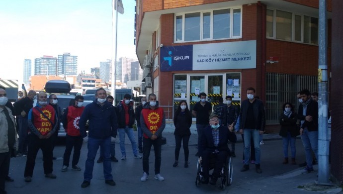 Devrimci Yapı, İnşaat ve Yol İşçileri Sendikası (Dev Yapı-İş), Aile ve Sosyal Hizmetler Bakanlığı’nın salgın boyunca şantiyelerdeki denetimleri durdurmasını gerçekleştirdiği eylemle protesto etti.