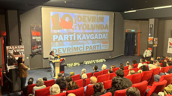 Devrimci Parti 10’uncu yıl etkinliği Makina Mühendisleri Odası Kültür Merkezi Binası’nda düzenlendi. Yoğun katılımın olduğu etkinliğe, Halkların Eşitlik ve Demokrasi Partisi (DEM Parti) milletvekilleri, Halkların Demokratik Kongresi (HDK), Ezilenlerin Sosyalist Partisi (ESP), Sosyalist Yeniden Kuruluş Partisi (SYKP), Sosyalist Meclisler Federasyonu (SMF), Yeşil Sol Parti (YSP), Yeni Demokrat Gençlik (YDG), Emek Partisi (EMEP), Alınteri, Kaldıraç ve çok sayıda siyasi kurum temsilcisi katıldı.