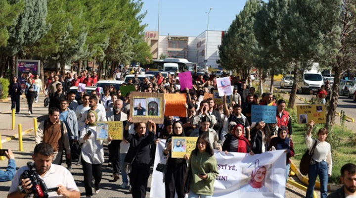 Van’da kaybolduktan 18 gün sonra cansız bedeni bulunan Rojin Kabaiş’in dosyasında yaşanan son gelişmelerin ardından Dicle Üniversitesi öğrencileri, kampüs içerisinde yaptıkları yürüyüşle faillerin açığa çıkarılmasını talep etti.