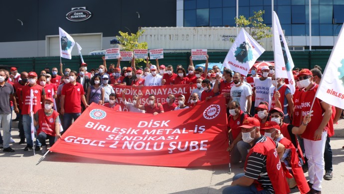 Devrimci İşçi Sendikaları Konfederasyonu (DİSK), Kocaeli’nin Dilovası ilçesinde bulunan Özer Elektrik Fabrikası’nda Birleşik Metal İşçileri Sendikası’na (Birleşik Metal-İş) üye oldukları için işten atılan ve bunun için fabrika önünde direnişte olan Özer Elektirik işçilerini ziyaret etti
