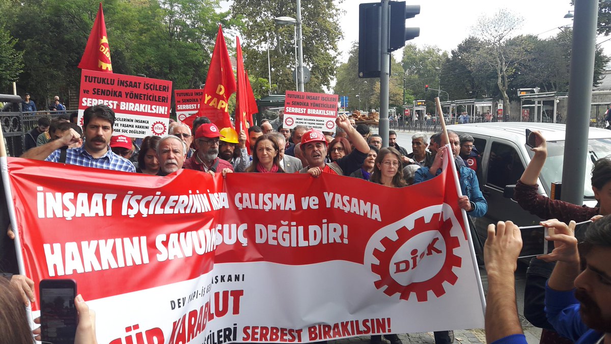 DİSK yönetici ve üyeleri, Dev Yapı İş Genel Başkanı Özgür Karabulut  ve tutsak inşaat işçileri için İstanbul Çalışma ve İş Kurumu İl Müdürlüğü önünde bir basın açıklaması düzenledi. Özgür Karabulut 4 Ekim’de DİSK Genel Merkezi’nde düzenlenen bir toplantıdan çıkarken gözaltına alınmış, ertesi gün de tutuklanmıştı. Böylece 3. Havalimanı inşaatındaki insanlık dışı çalışma koşullarına karşı eylemlerin ardından gözaltına alınarak tutuklanan sendikacı ve inşaat işçisi sayısı 35’e yükselmişti.