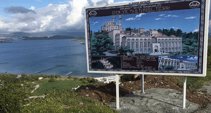 Diyanet İşleri Başkanlığı, Bodrum’da Gökova Koyu manzaralı bir arazide, yaklaşık 100 milyon liraya mal olacak devasa külliye inşaatına hukuki süreç tamamlanmadan yeniden başladı