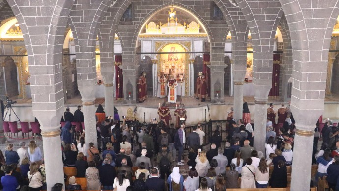 Diyarbakır’ın tarihi Sur ilçesinde 2015 tarihinde ilan edilen sokağa çıkma yasakları döneminde büyük hasar gören ve 7 yıl sonra tekrar ibadete açılan Surp Giragos Ermeni Kilisesi’nde ilk ayin yapıldı. Ermeni Cemaati’nin Ortadoğu’daki en büyük kilisesinde yıllar sonra yapılan ayine, yurt dışından ve Türkiye’nin çeşitli kentlerinden Ermeniler katıldı. Ayini Türkiye Ermeni Patriği Sahak Maşalyan yönetti. Ayinde mumlar yakıldı, dilekler dilendi. Sonrasında çanların çalınmasıyla, koro halinde dualar okundu.