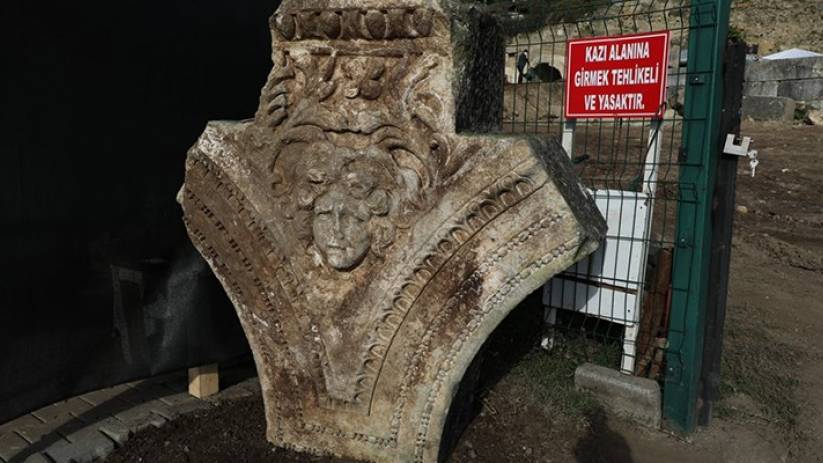 Sürdürülen kazı çalışmalarında daha önce de bebek mezarı, su arkı ve heykel kaidesinin bulunmasının ardından 1 veya 2’inci yüzyıla ait olduğu sanılan Medusa başı bulundu.
