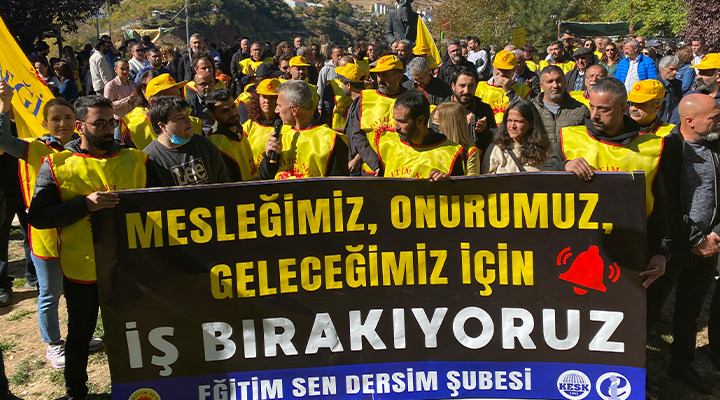 Eğitim Sen Dersim Şubesi, çok sayıda eğitim emekçisinin katılımıyla Sanat Sokağı’nda Seyit Rıza Meydanı’na kadar yürüdü. “Emekçiyiz, haklıyız, kazanacağız” sloganları atan emekçiler, “Mesleğimiz onurumuz, geleceğimiz için iş bırakıyoruz” pankartı taşıdı. Yürüyüş sonrası Seyit Rıza Meydanı’nda konuşan Eğitim Sen Şube Başkanı Hüseyin Kasun, ortak metni okudu.