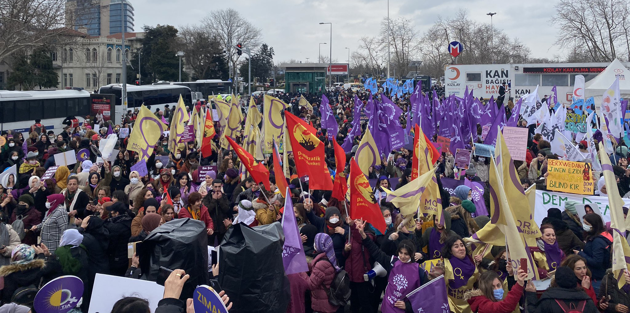 “Bugün ve 8 Mart 2022 tarihinde de etkinlikler aynı şekilde 2911 sayılı Kanun kapsamında daha önceden toplantı ve gösteri yürüyüşleri yapılabileceği ilan edilen yerlerde ve güzergâhlarda yasal çerçeve içerisinde düzenlenebilecektir. Belirlenen yerler dışında kalan alanlarda kanuna aykırı şekilde eylem yapılmasına kesinlikle müsaade edilmeyecektir. Bu konu ile ilgili etkinliklerin yasal zeminde ve belirlenen yerlerde huzur ve güven ortamı içerisinde yapılması için tüm güvenlik tedbirleri alınmıştır.”