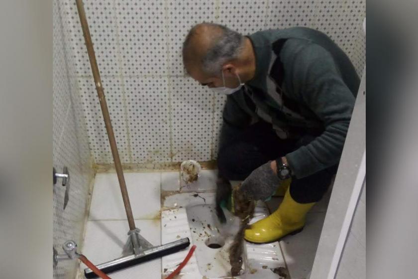 Van’da sendikalı olduktan sonra işten atılan Mehmet Belli’nin (40), taş ve kumaş artıklarıyla tıkanmış bir tuvaleti elleriyle temizlediğinin fotoğrafı ortaya çıktı. Evrensel’e konuşan Belli, “Çocuklarıma ekmek götürmek için dayanıyordum” dedi. DERİTEKS Genel Merkez Eğitim ve Örgütlenme Sekreteri Veysel Arslan, işçilerin vidanjör talep etmesine rağmen ‘Bu onun işi denilip’ eliyle temizlenmesi istendiğini söyledi.