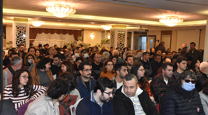 Emek ve Özgürlük İttifakı’nın Kağıthane’de Labella Premium Salonu’nda gerçekleştirdiği emekçi buluşmasına yoğun katılım olurken salona “Her iş yerine sendika girecek”, “Günlük çalışma saati 6 saat olacak”, “Değiştireceğiz, tüm ücretler yükselecek” afişleri asıldı.