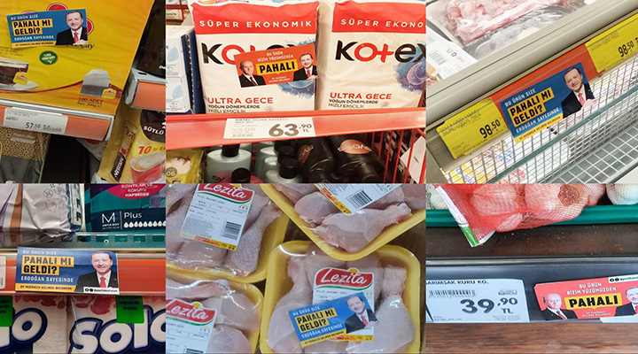 “Bu ürün size pahalı mı geldi? Erdoğan sayesinde. Oy verirken aklında bulunsun” çıkartmalarının tasarımcısı Mahir Akkoyun, gözaltına alındığını duyurdu.