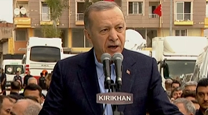 “Neredeyse yarım milyon insan deprem bölgesinde görev üstlendi” diyen Erdoğan, “Depremde zarar gören Hatay Havalimanı’nı 1 hafta içerisinde yeniden işler hale getirerek çalışmaların kolaylaşmasını sağladık. Gel gör ki ana muhalefet Hatay Havalimanı’nı biz onardık yalanını ortaya attı, yaptıkları böyle bir şey yok” ifadesini kullandı. Erdoğan bu kez de Kırıkhan’da depremzedelerden ‘helallik’ isteyerek, ” Sıkıntılar yaşadıysanız bize düşen sizlerden helallik istemektir” dedi.