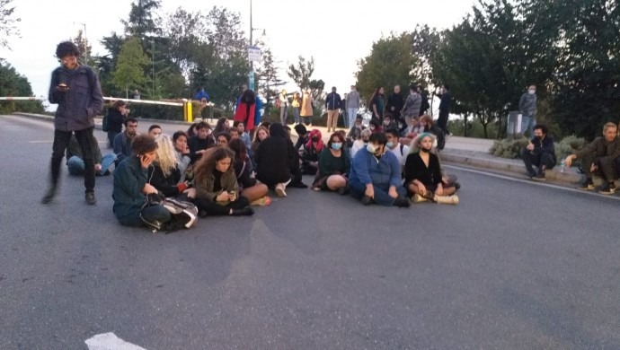 Yürüyüşün ardından öğrenciler, tekrar üniversitenin Güney Kapısı önünde gelerek oturma eylemi gerçekleştirdi. Gözaltına alınan arkadaşlarının bir an önce serbest bırakılmasını isteyen öğrenciler, “Biz korkmuyoruz, korkmayacağız. Hepimizi terörist ilan etsin, hepimizi gözaltına alsın, Türkiye’nin insanları olarak bıktık sessiz kalamayacağız. Kayyumun arabasının önünde durmuşuz da, ‘teröristmişiz’ de, bunlar eskidi artık Tayyip” açıklamasında bulundu.