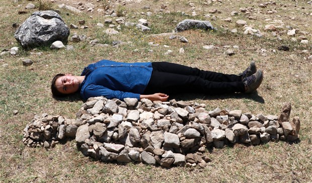 Mimar Sinan Üniversitesi Grafik Tasarım Bölümü 3’üncü sınıf öğrencisi Büşra Öğüt, okulunun pandemi sürecinde tatil olması nedeniyle Ağlasun ilçesindeki bin 100 rakımlı Akdağ Yaylası’ndaki evinde ailesiyle birlikte yaşıyor. Kadın cinayetlerine duyarsız kalmayan Büşra Öğüt, Akdağ Yaylası’ndaki arazide, küçük taşlarla kadın vücudunu betimleyen heykel yaptı.