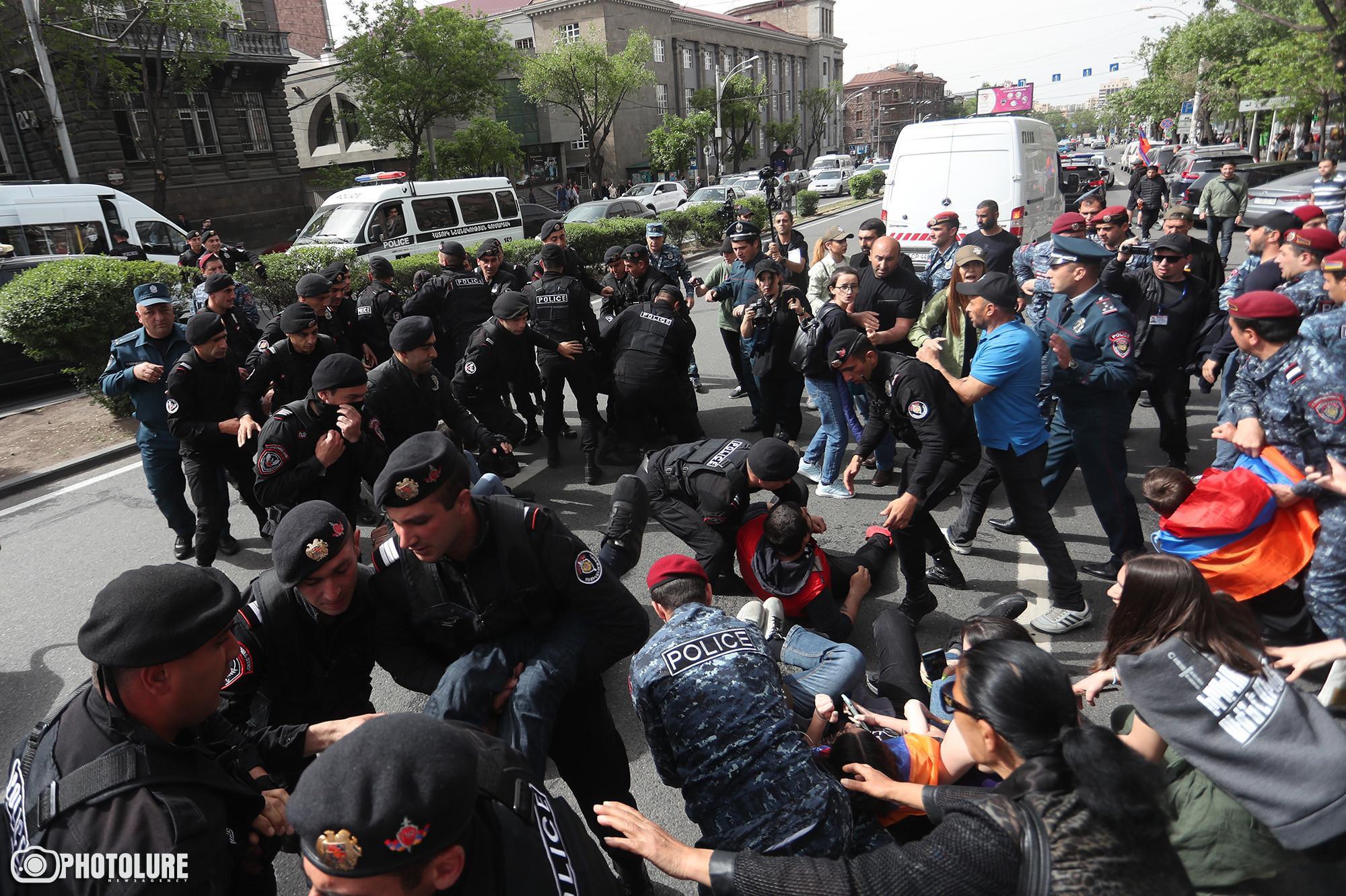 News.am’e göre Emniyet güçleri çok sayıda göstericiyi gözaltına aldı. Ermenistan medyasına göre şu ana kadar 48 kişi gözaltına alındı.