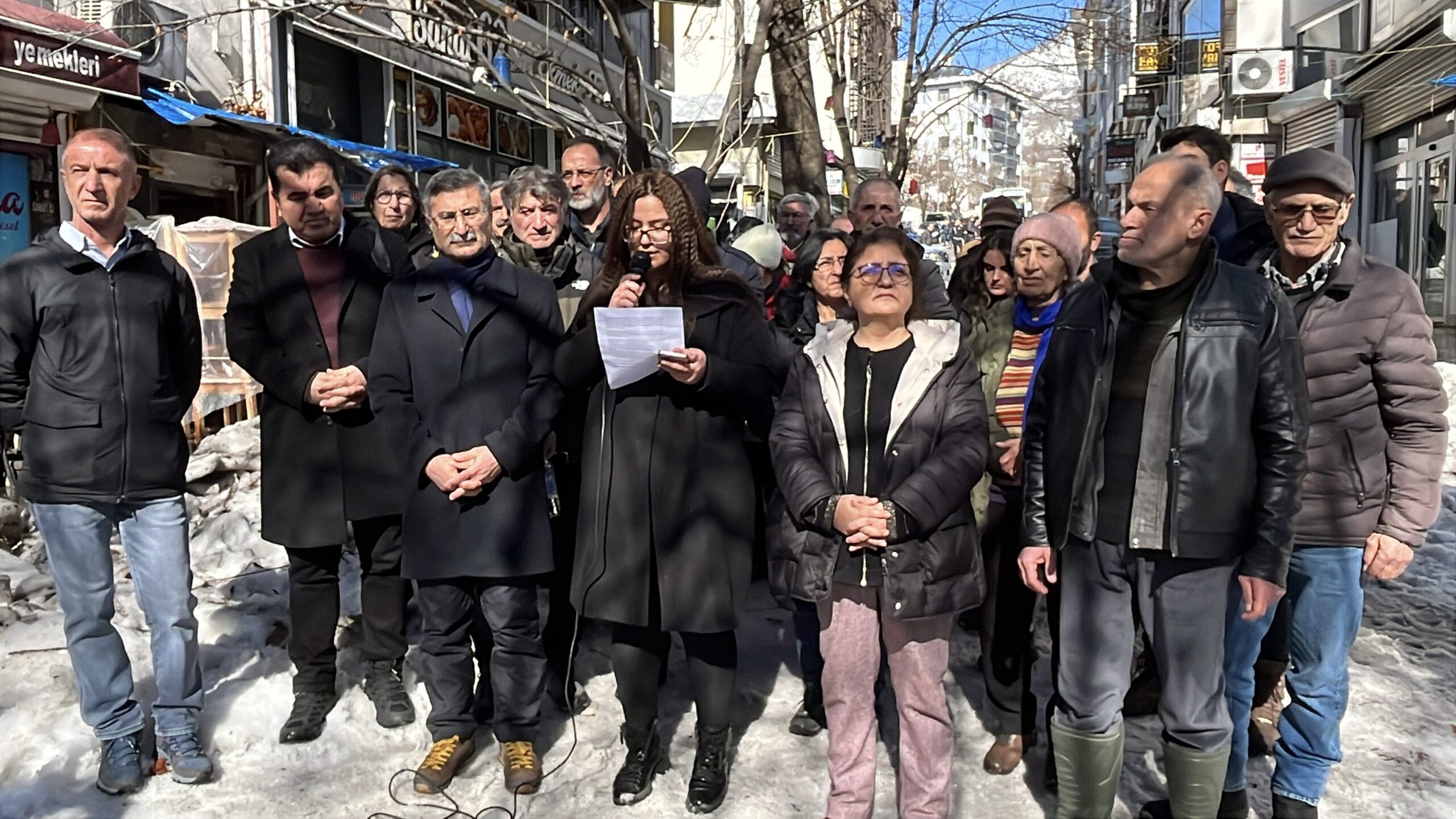 Daha sonra konuşan DEM Parti Dersim Milletvekili Ayten Kordu ise, “Buradan şunu söylemek gerekiyor: Ezilenlerin Sosyalist Partisi, bu coğrafyada Rojava halkıyla güçlü bir dayanışma içinde olan; sosyalistlerin, öğrencilerin ve kendisine insanım diyen herkesin daha onurlu, daha eşit bir yaşam mücadelesini savunduğu bir hattı temsil etmektedir. Dolayısıyla bugün; demokratik kurumları, gazetecileri, ekolojistleri, kadın mücadelesi yürütenleri, kültür ve sanat alanında emek verenleri, sendikal mücadele yürütenleri ve yurtseverleri gözaltına almak, bu mücadeleyi kriminalize etmeye çalışmak açık bir siyasal kırım politikasıdır.” dedi.