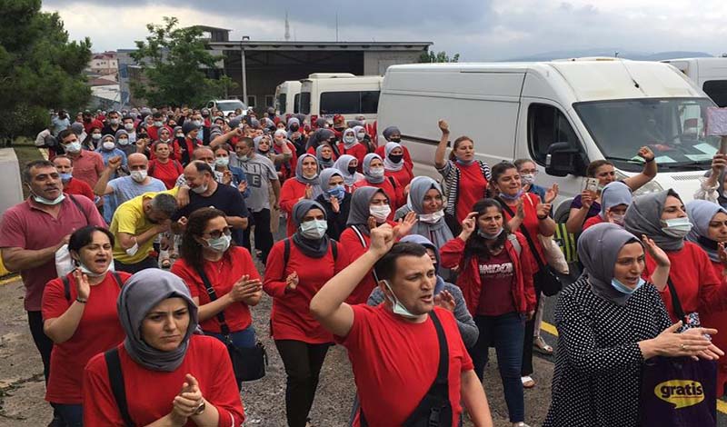 Açıklamanın ardından işçiler fabrikanın Orhanlı-Tuzla yolunu bir süreliğine kapatarak eylemlerini sürdürdü. Çevreden geçen araçların sürücüleri de kornalarıyla işçilere destek oldu.