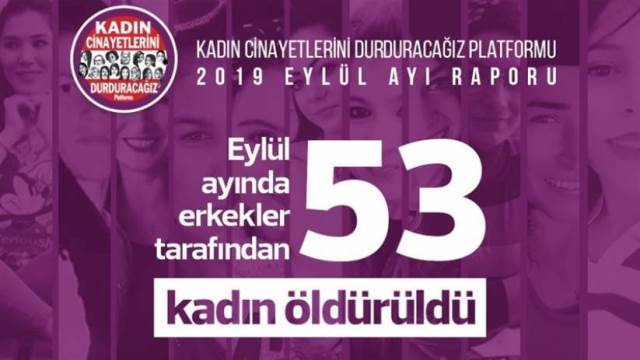 Kadın Cinayetlerini Durduracağız Platformu (KCDP), 2019 Eylül ayı Kadına Yönelik Şiddet Raporu’nu açıkladı. Rapora göre, Eylül ayında 53 kadın erkekler tarafından katledildi. Raporda bu ay işlenen kadın katliamlarında 11’i şüpheli ölüm olarak kaydedilirken, 31 kadının neden katledildiği tespit edilemediği belirtildi.
