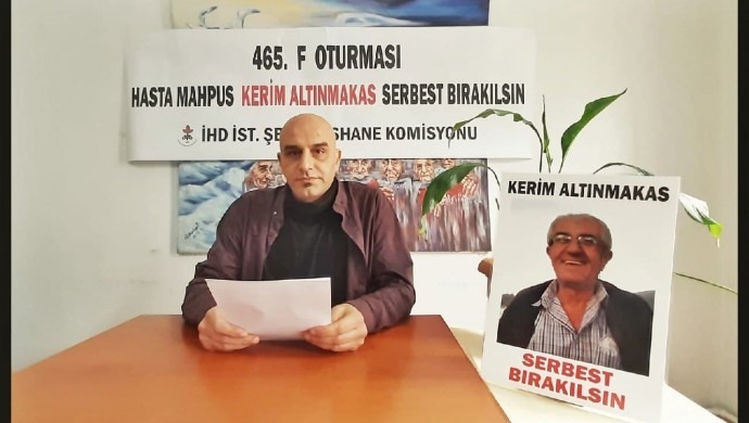 Altınmakas’ın ailesinin İHD’ye verdiği bilgileri aktaran Bekin, “17 Ocak 2021 tarihinde tutuklanan ve halen İzmir Kırıklar 1 Nolu F Tipi Hapishanesi’nde tutulan 65 yaşındaki Kerim Altınmakas, tutuklanmadan önce kalp krizi geçirmiş, yapılan anjioda ana damarlardan birinin yüzde 100, diğerinin ise yüzde 80 tıkalı olduğu saptanmıştır. Öncesinde prostat ve fıtık ameliyatı da olan Altınmakas’ın; omur kayması, hipertansiyon, yüksek kolesterol, diz eklemlerinde sıvı kaybı, astım bronşit, kalınbağırsakta kitle rahatsızlıkları nedeni ile düzenli kontrol ve tedaviye ihtiyacı bulunmaktadır. Ancak pandemi nedeniyle, gerekli kontrol ve tedavileri yapılamamakta bu durum sağlığını ve yaşamını tehdit etmektedir” dedi.