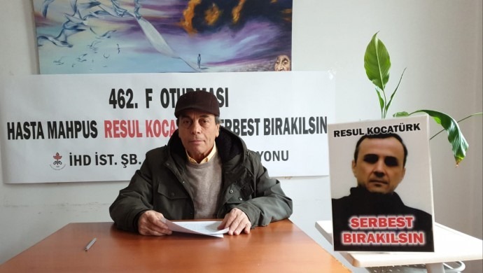 İnsan Hakları Derneği (İHD) İstanbul Şubesi Hapishane Komisyonu, hasta tutukluların durumuna dikkat çekmek için her hafta yaptıkları “F oturumu”nun 462’ncisini Koronavirüs (Kovid-19) nedeniyle sosyal medya hesapları üzerinde düzenledi. Bu oturumda Kırıkkale F Tipi Hapishanesi’nde tutulan ağır hasta tutuklu Resul Kocatürk’ün durumuna dikkat çekildi.
