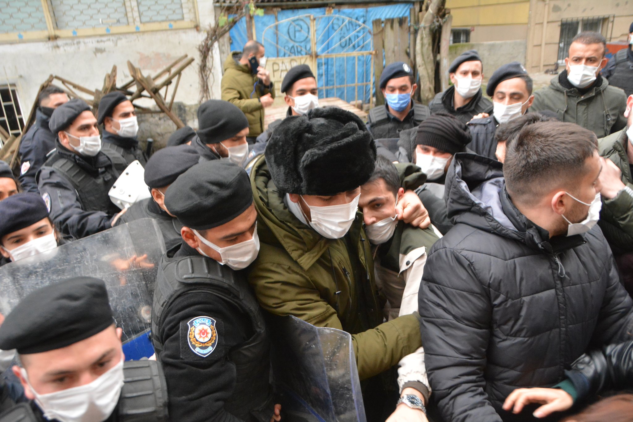 Polis ilk olarak, adli kontrol uygulaması kapsamında imzasını atmadığı gerekçesiyle Can Çıldır’ı gözaltına almak istedi. Kitlenin itirazı üzerine polisle aralarında arbede yaşandı. Can Çıldır’ın ardından Rahime Kavrar ve Gamze Toprak da hakların arama kararı olduğu gerekçesiyle gözaltına alındı. Parti binası önündeki polis ablukası sürüyor.
