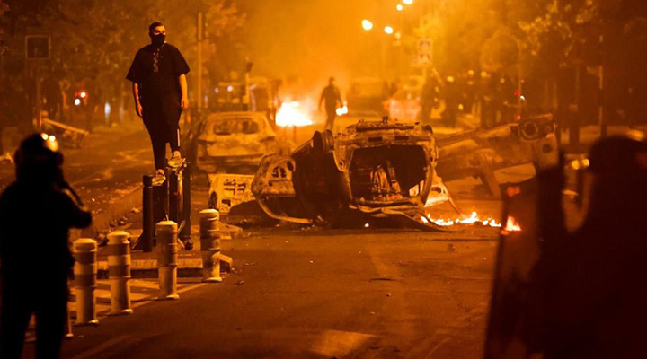 Fransa’nın başkenti Paris’te Cezayir asıllı 17 yaşındaki Nael M.’in polis tarafından katledilmesi sonrası başlayan eylemler 4’üncü gününde devam ediyor. Paris, Marseille, Lyon, Toulouse, Strasbourg ve Lille gibi onlarca kentte binlerce kişi sokaklara çıkarak araçları ve binaları ateşe verdi. Konteynerlerle barikatlar oluşturan halk, kendilerine biber gazıyla saldıran polislere havai fişeklerle yanıt verdi.